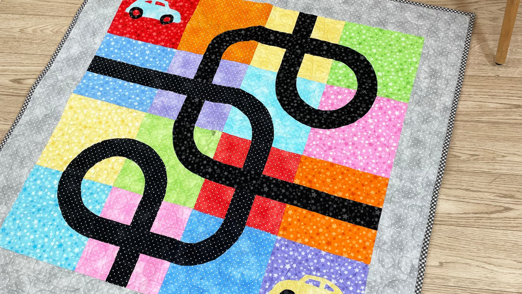 After gathering all the materials, you can follow the step-by-step Playtime Quilt video tutorial by Laura Coia of Sew Very Easy. The tutorial is free, beginner-friendly, and will guide you through each step of the project. She will demonstrate how to sew curves with confidence, prepare the appliqué to make the two car blocks, and adding the borders after you assemble the quilt top.