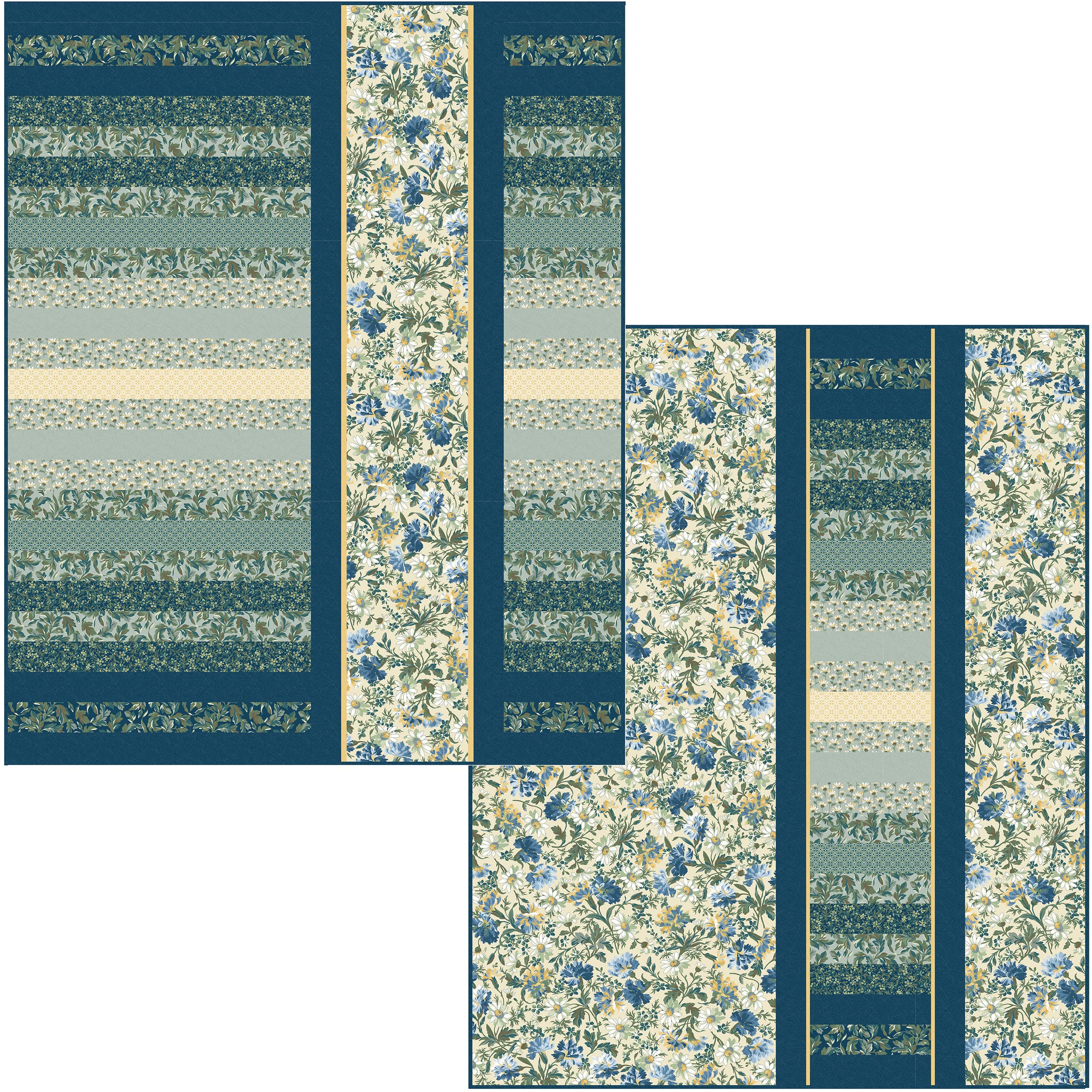 The deep blues, creamy neutrals, and pop of yellow work together for projects like the Sunny Side Quilt by Lavender Lime pictured here. The Sunny Side Quilt finishes at 66-1/2 x 82-1/2" and is precut-friendly. To get started, you'll need these fabrics from the Willoughby Collection: two packs of 5" squares, five fat quarters, 1-1/2 yards for the border, and 3-1/8 yards for the background fabric. We used a light Shadow Play in this sample for the background. The Sunny Side Quilt pattern by Lavender Lime can be purchased at your favorite independent quilt shops and wherever you buy your quilting, sewing, and crafting supplies.