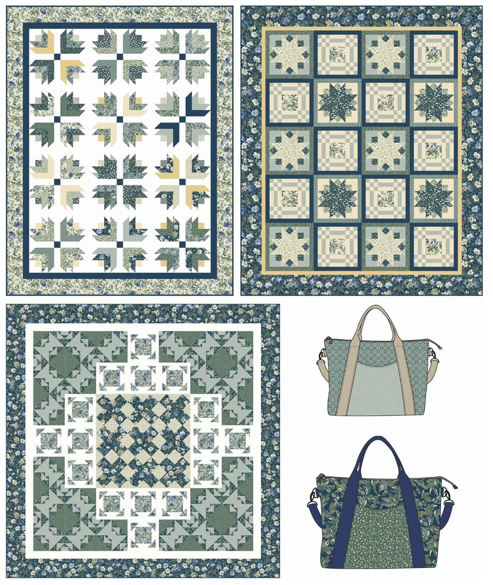 There are so many fun projects we are imaging making with the Willoughby collection. Above are a few more projects we love: the Twisted Tulips Quilt by The Tipsy Needle (above left), the Willow Meadow Quilt by The Whimsical Workshop (above right), the Triple Window Quilt by Bound to Be Quilting (lower left), and two versions of the Oxbow Tote by Noodlehead (Lower right).