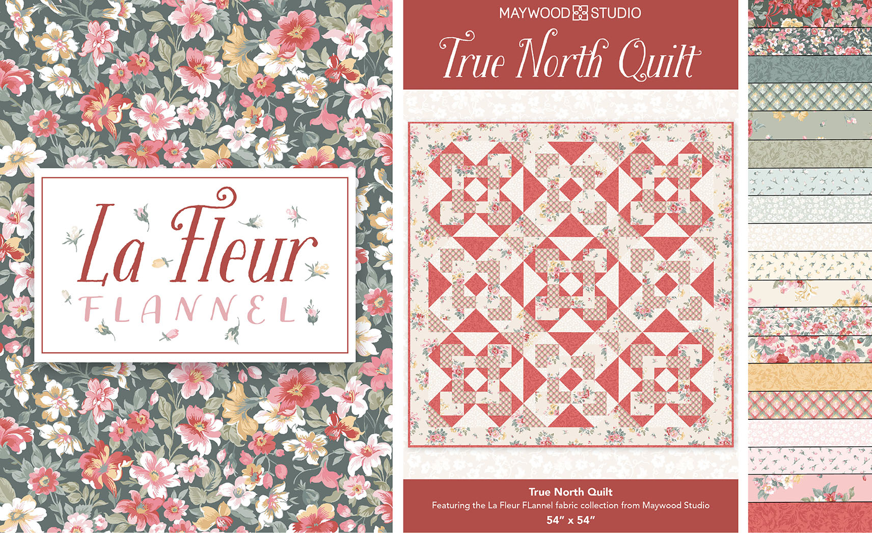 The latest version of the True North block comes to life in La Fleur, where we used a soft floral flannel in the background and borders to create a vintage-inspired vibe. This quilt uses just four fabrics to make two distinct blocks in a positive/negative layout, adding subtle contrast and texture to this gentle, cozy design.